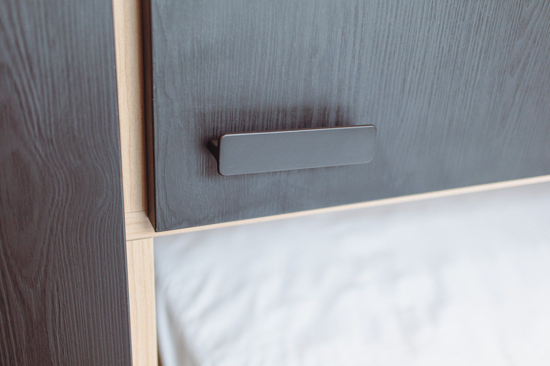 Das Bett ist ein wahres Raumwunder. Wir haben es ein wenig erhöht um den Platz darunter perfekt nutzen zu können.